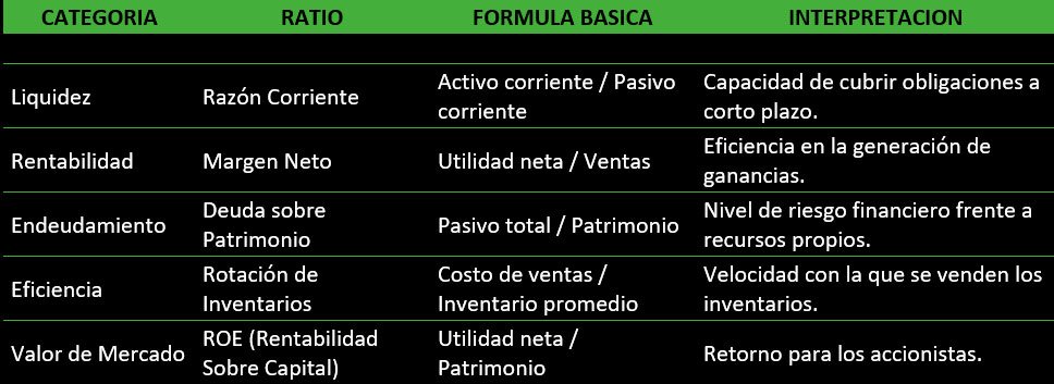 ▪ Empresarios: Se concentran en ratios de liquidez y rentabilidad para garantizar la viabilidad del negocio y la generación de utilidades.